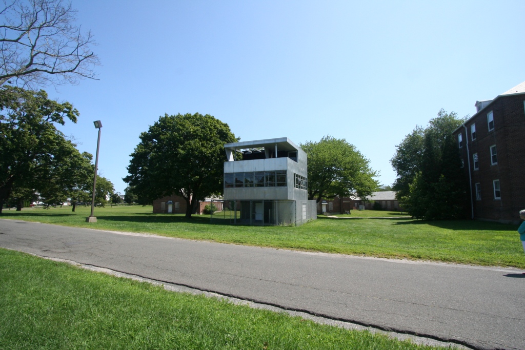 Buildings adjacent to the Aluminaire are boarded up and unused. NYIT has moved most of its programs to other campuses, including the Architecture & Planning department, stewards of the Aluminaire.